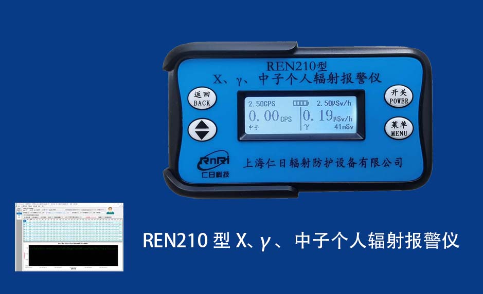 REN210型X、γ、中子個人輻射報警儀內置SiPM和鋰玻璃晶體組成中子探測器儀器,采用反照率方式探測中子射線,同時也能探測X、γ射線。因此它可同事監(jiān)檢測X、γ、中子三種射線。能顯示工作場所的劑量當量率和累積劑量,更換電池時,日期及累積數(shù)據(jù)能永久保存。可選配RenRiPersonal個人劑量管理軟件,該軟件可存儲多個人的歷史數(shù)據(jù),能記錄日累積、月累積、年累積、輻照時長、計算平均劑量率、扣除或不扣除本底輻射,且以文字和圖譜的方式展現(xiàn)數(shù)據(jù)。廣泛應用于環(huán)保、化工、水泥、煤礦、土木工程、石油、醫(yī)院、疾控、進出口商檢、核電、加速器、機場、中子源庫和其他安檢、邊境控制海關檢測等領域中的工作人員進行個人安全防護監(jiān)測及放射性提示。